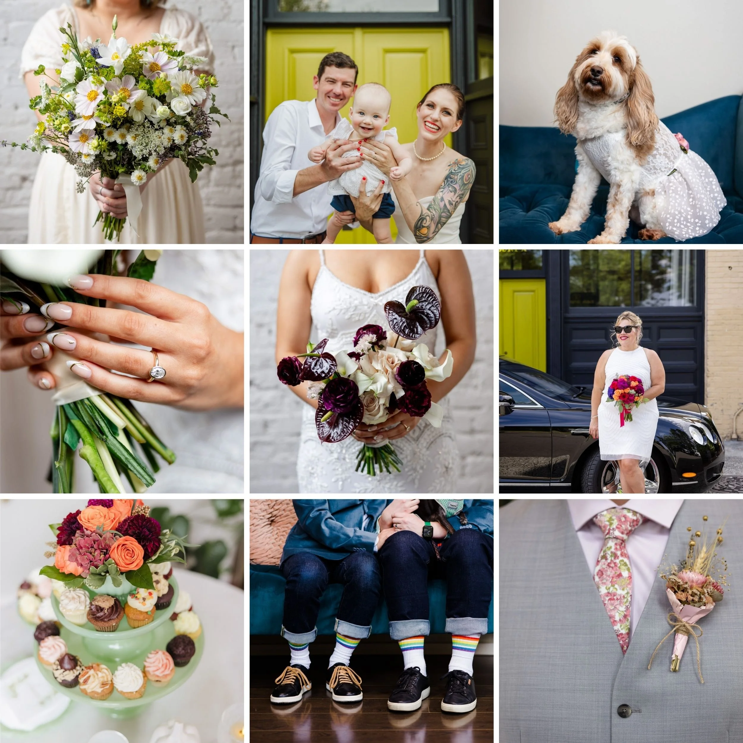 A groom sang to his bride in Korean, a Halloween-themed wedding where even the guests came in Beetle Juice costumes, a bride in cowgirl boots and a groom in a cowboy hat, a groom lovingly learned and delivered his vows in Japanese to his Japanese husband, spectacular vintage cars that have made their way to the venue and into the photos, a couple wearing colorful traditional Nigerian attire, a Lego boutonniere, a bride in an orange dress she made herself..the list goes on and on!